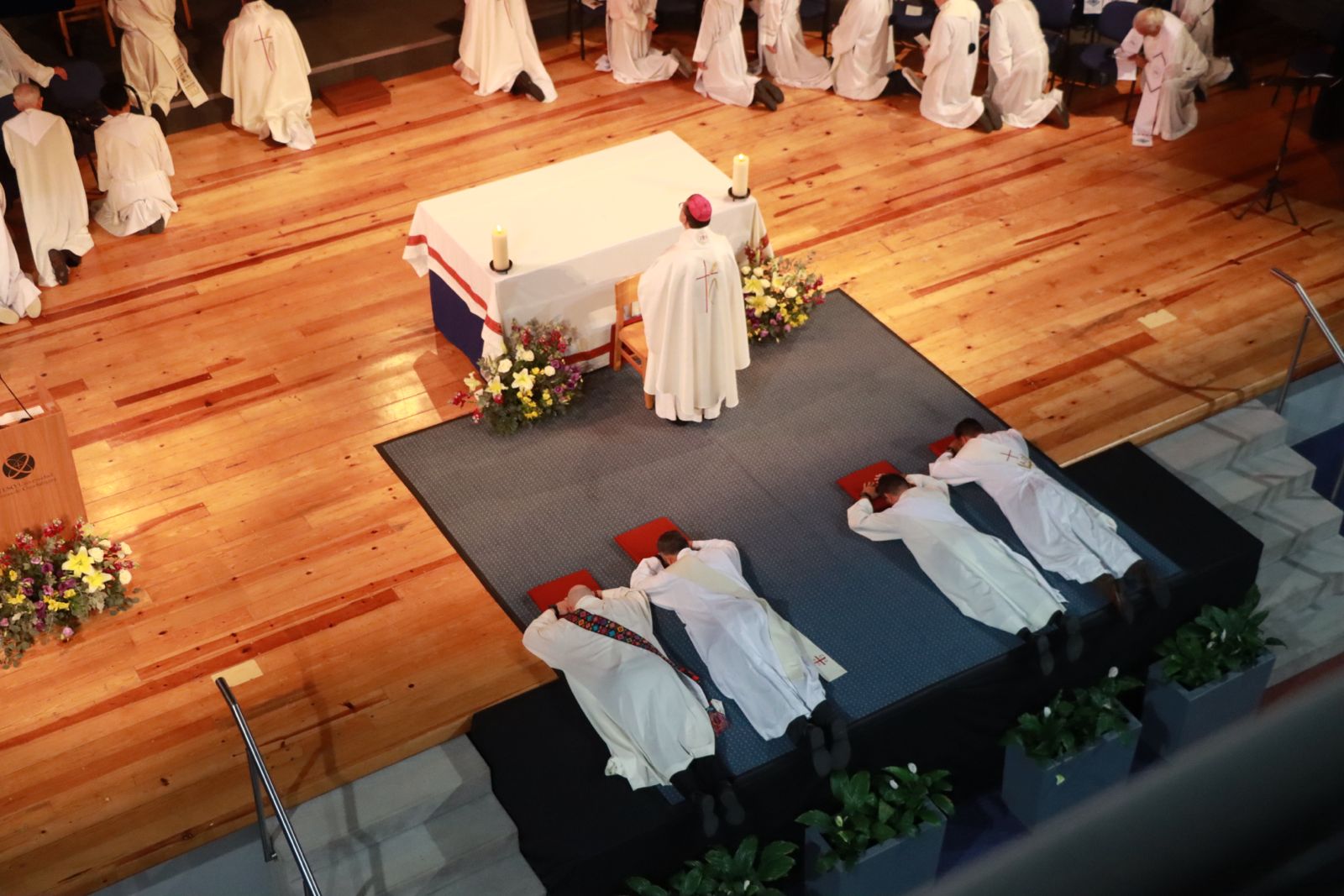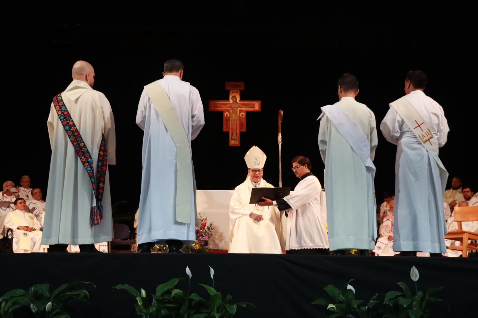 Miguel Ángel, Guillermo, José Antonio, Rodrigo muchas felicidades. Con la Ordenación sacerdotal culminan la etapa de formación y comienzan la vida del apóstol jesuita enviado en misión. Ustedes mejor que nadie saben, que nuestro pueblo necesita buenos y santos sacerdotes. Que su compromiso con los valores evangélicos, allá en el Noviciado, Parras, Vocaciones y en la Ciudad de los Niños, marque su modo de proceder en la vida. Les pido que la oración, la eucaristía, el discernimiento y la vivencia de los votos, sean parte fundamental de sus vidas. Háganlas un hábito para fortalecer su entrega y servicio.