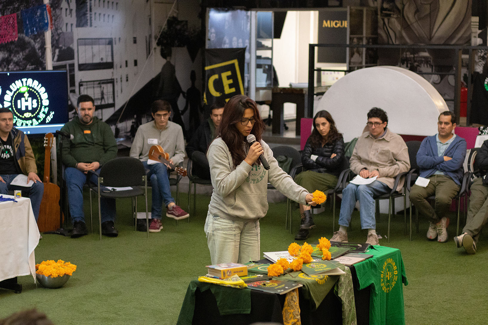 A lo largo del día, se ofrecieron distintos espacios para que los participantes compartieran sus historias. Estas narraciones, llenas de anécdotas chuscas, emotivas, tristes, dolorosas, esperanzadoras y amorosas, fueron reflejo de las vivencias durante su voluntariado. La comida sirvió como un momento clave para continuar estrechando lazos. Los pequeños grupos espontáneos crecieron hasta formar un gran círculo en el que todos fueron bienvenidos. Las barreras generacionales, de proyectos o de amistades se desdibujaron, creando una atmósfera de unidad y pertenencia, tejida desde la gracia de un mismo cuerpo.